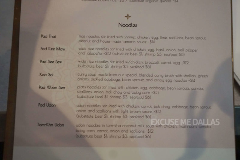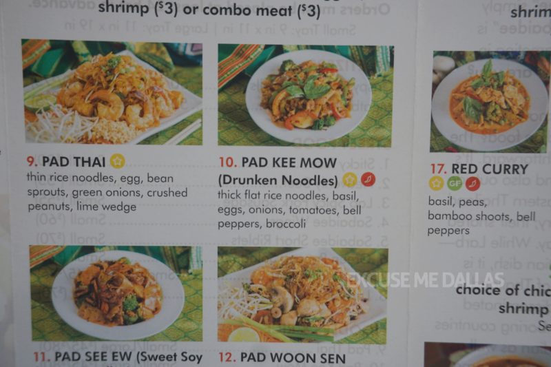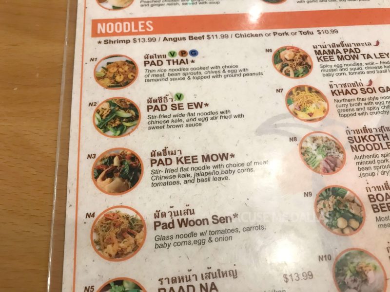 写真右側Pad See Ew $10.99 (チキン、ポーク、豆腐から選べるのでチキンにしました!)
