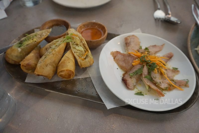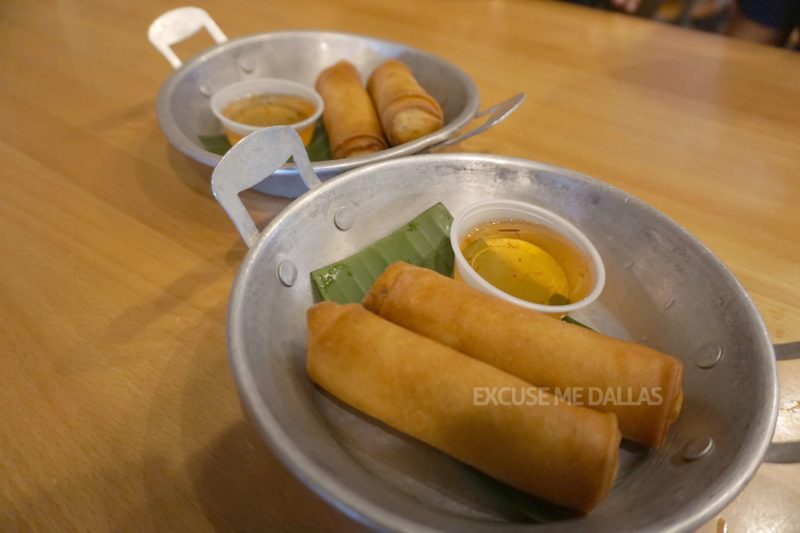 (左)Por Pier Todt $7.98 タイ式春巻き 1皿2つなので私たちは2皿注文。値段は2皿分。