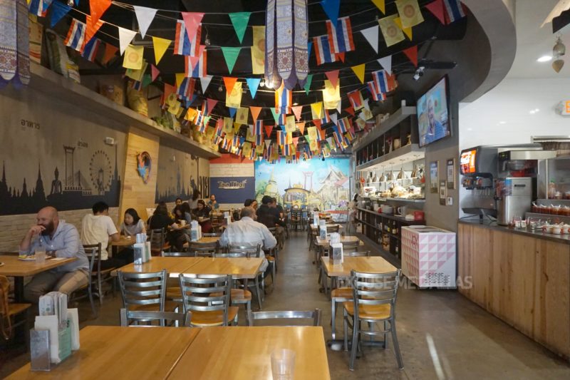 店内はこんな感じです!色んな旗が天井からぶら下がっていて、タイっぽい雰囲気をだしています。