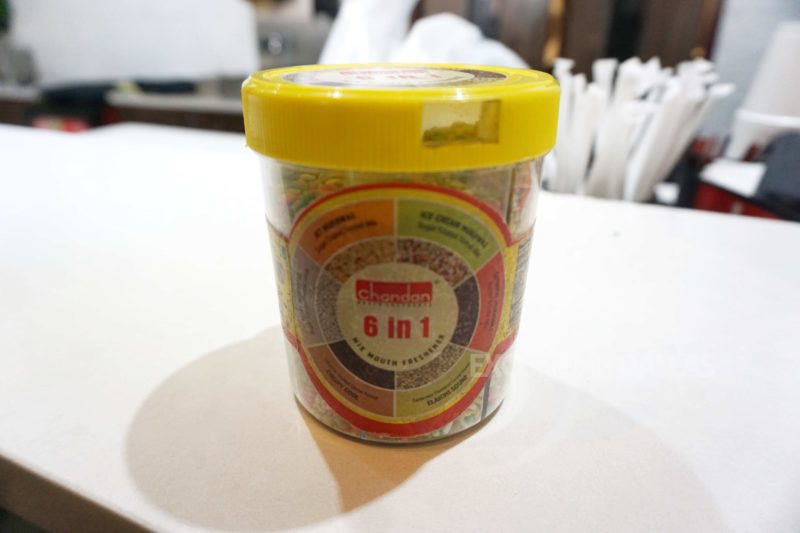 そして、インド料理屋さんに行くと、レジ付近に必ずあるこちらのお口直し。
