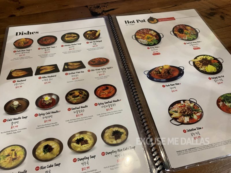 夫はS1のVolcanoというスンドゥブです。カニ 、ムール貝、ハラペーニョが入っています。このTofu鍋、値段がすべて同じで昼は$9.99、夜は$11.99となっています。そうなると、これが一番高そうな具材ですよね(笑)カニが入ってるのはいいな~でもハラペーニョ食べれないからな。。